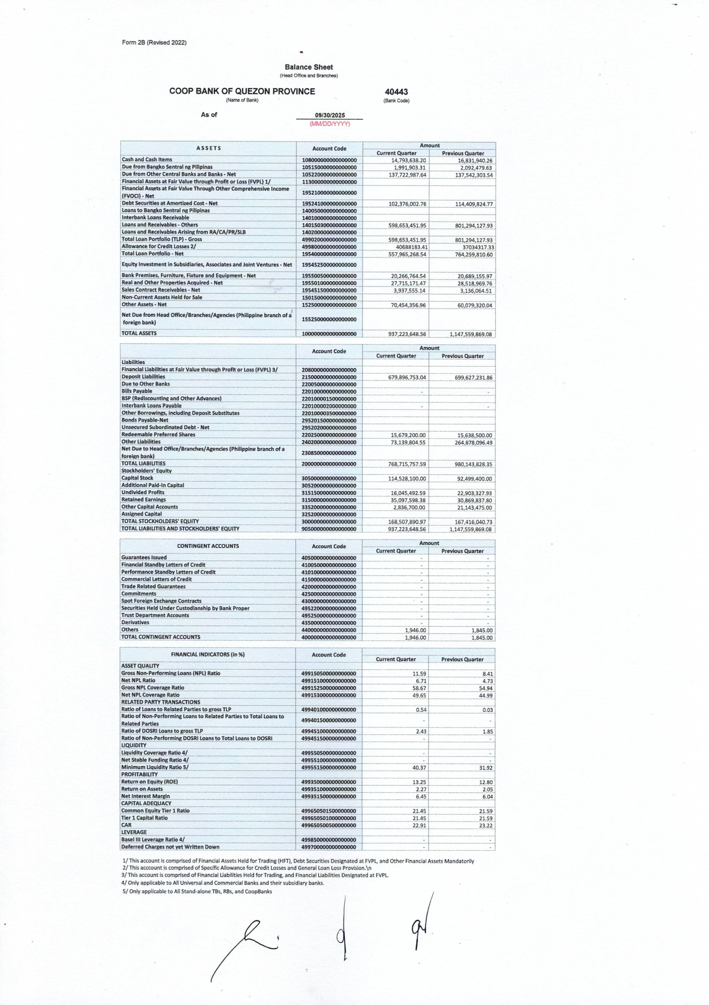 Published Balance Sheet as of September 30, 2025